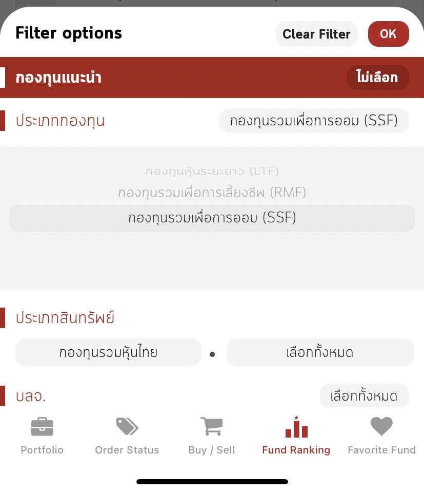 1. Filter ประเภทกองทุนที่ต้องการลงทุน