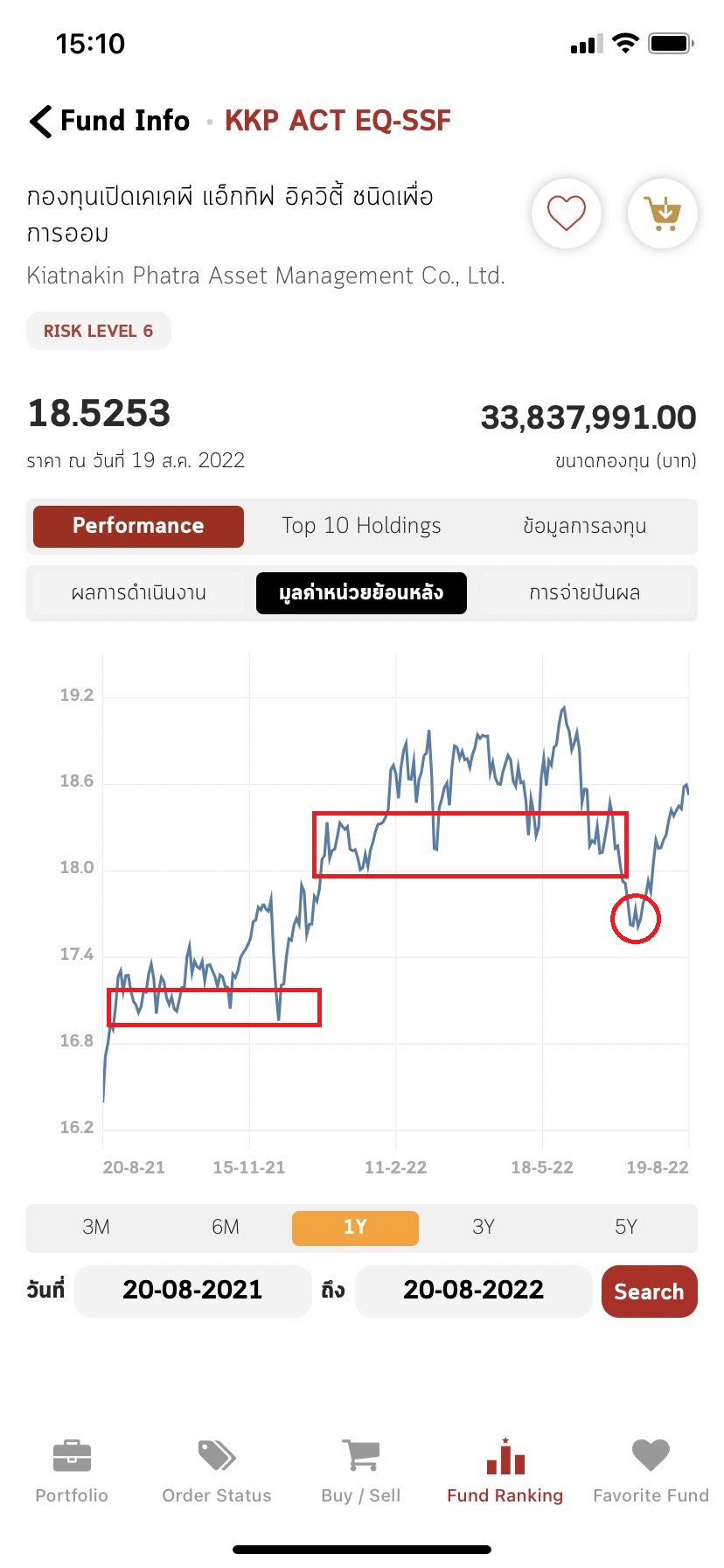 - มูลค่าหน่วยย้อนหลัง – ช่วยให้เราเห็นเทรนด์ราคาของกองทุนที่ต้องการเข้าถือ ส่วนจุดที่น่าซื้อคือจุดที่มีการทำฐานหรือย่อตัวลงมาของราคา